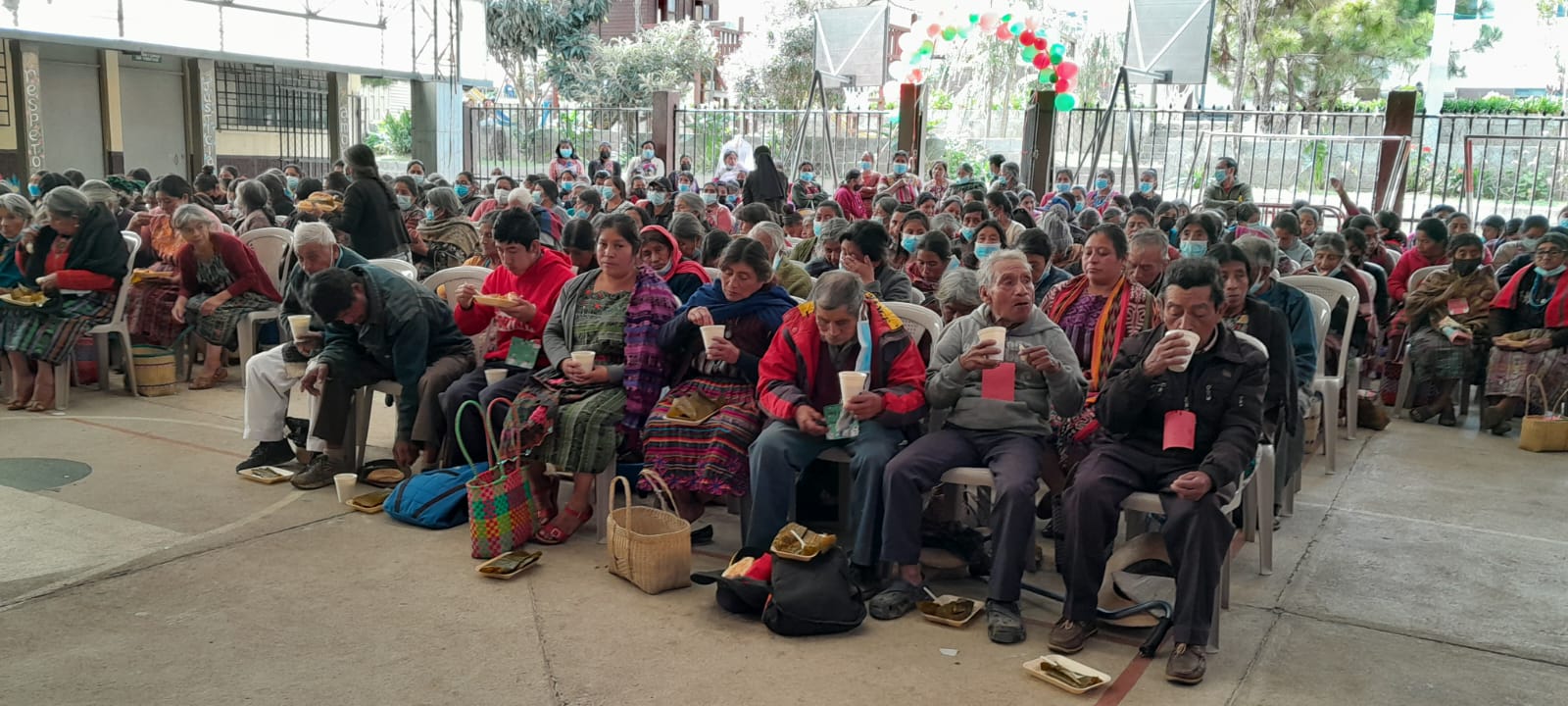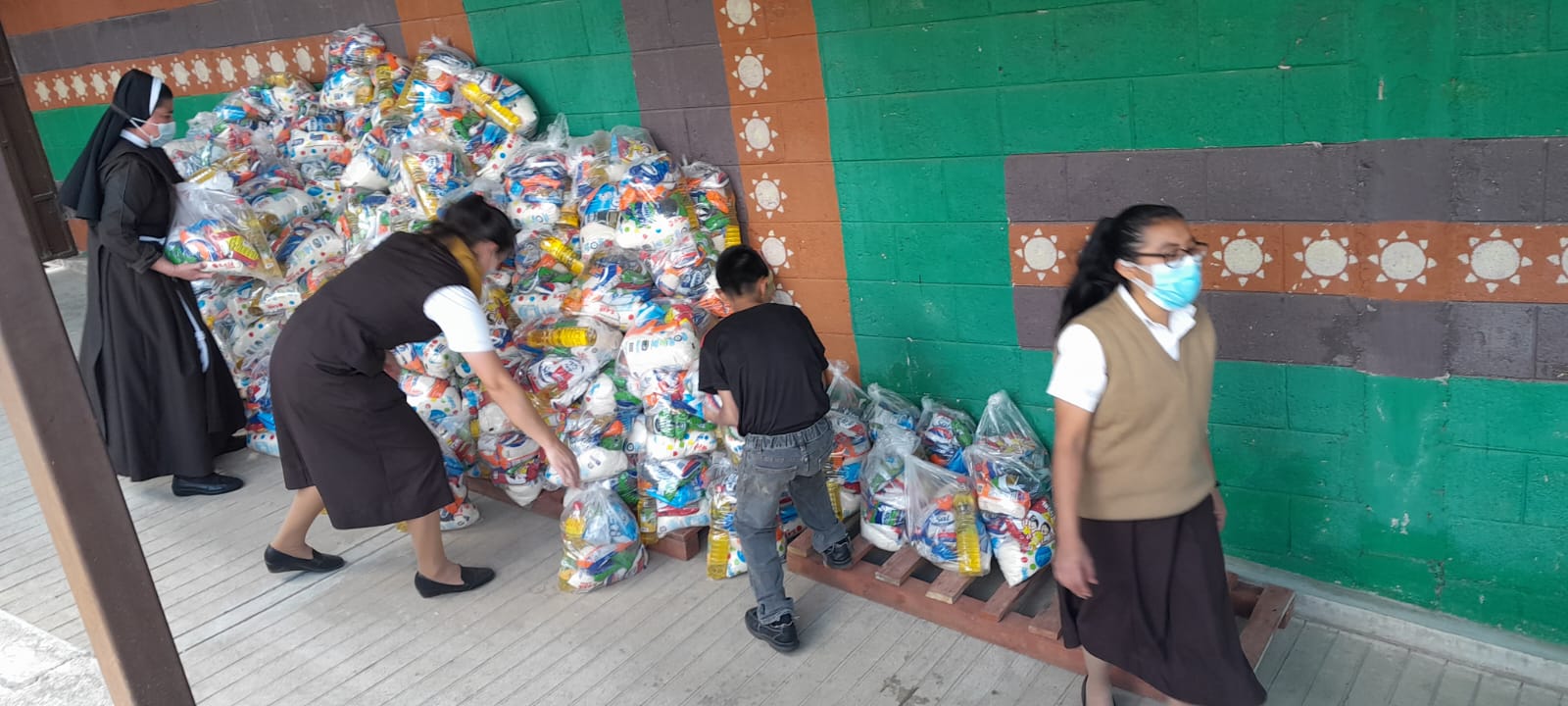 Evangelización en diferentes formas. Entrega de una canasta básica de alimentos cada mes, ocasionalmente apoyo médico.